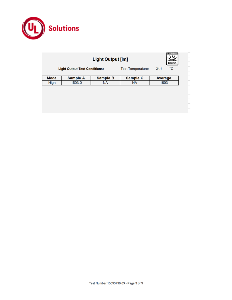 By my testing, the Foxtrot-EDC Fullsize produced 1,589 lumens. By UL’s testing, it produced 1,603. This is a difference of 14 lumens, or 0.8%.